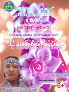 Под руководством народного мастера ОЭНР все дети сделают своими руками цветы из атласной ленты. Техника выполнения будет различной по сложности, и требовать внимательности и аккуратности. Ребята смогут вложить в неё не только мастерство и терпение, но и талант, фантазию и, конечно же, любовь к родному человеку. Все участники мастер-класса получат массу эмоций и хорошее настроение.