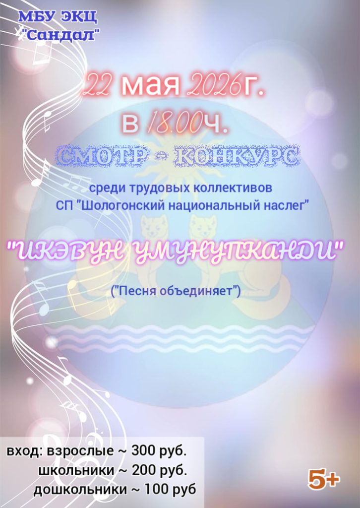 Смотр-конкурс «ИКЭВУН УМУНУПКАНДИ» («Песня объединяет») среди трудовых коллективов СП «Шологонский национальный наслег», посвященный Дню Песни, Году Единства в РФ, Году Культуры в РС(Я) и Году Экологии в Оленекском эвенкийском национальном районе.